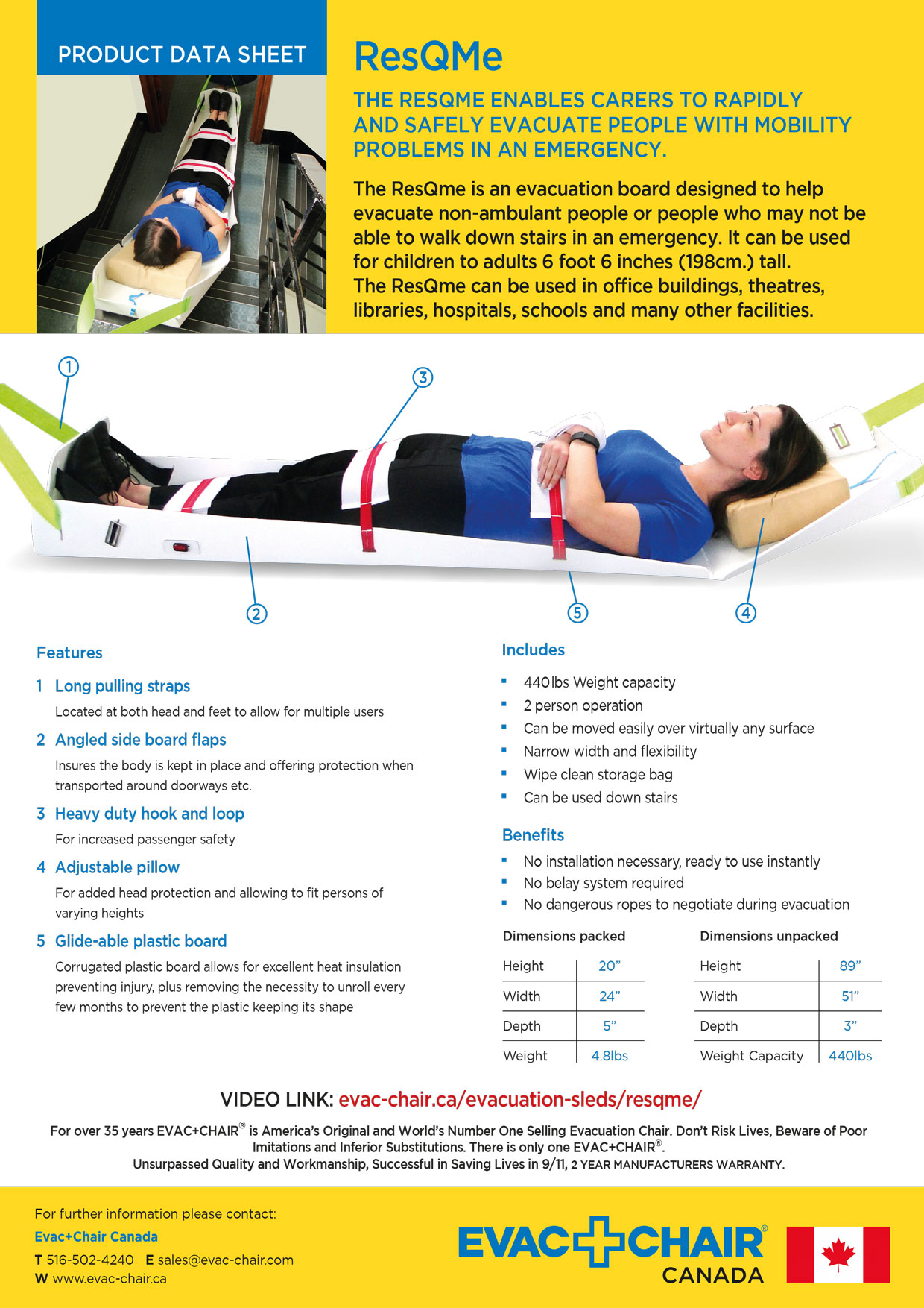 Rescue Sheet Evac Chair Canada
